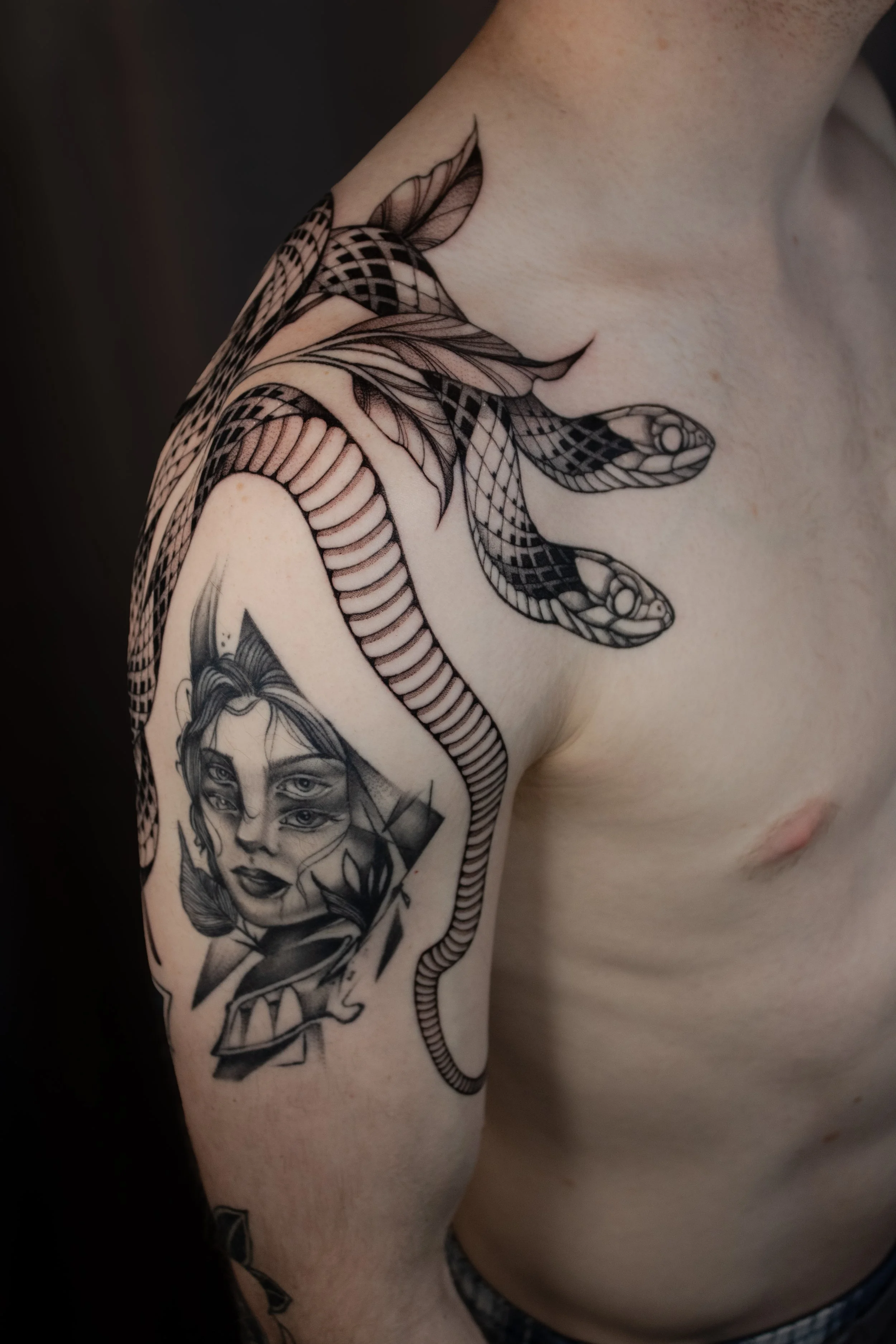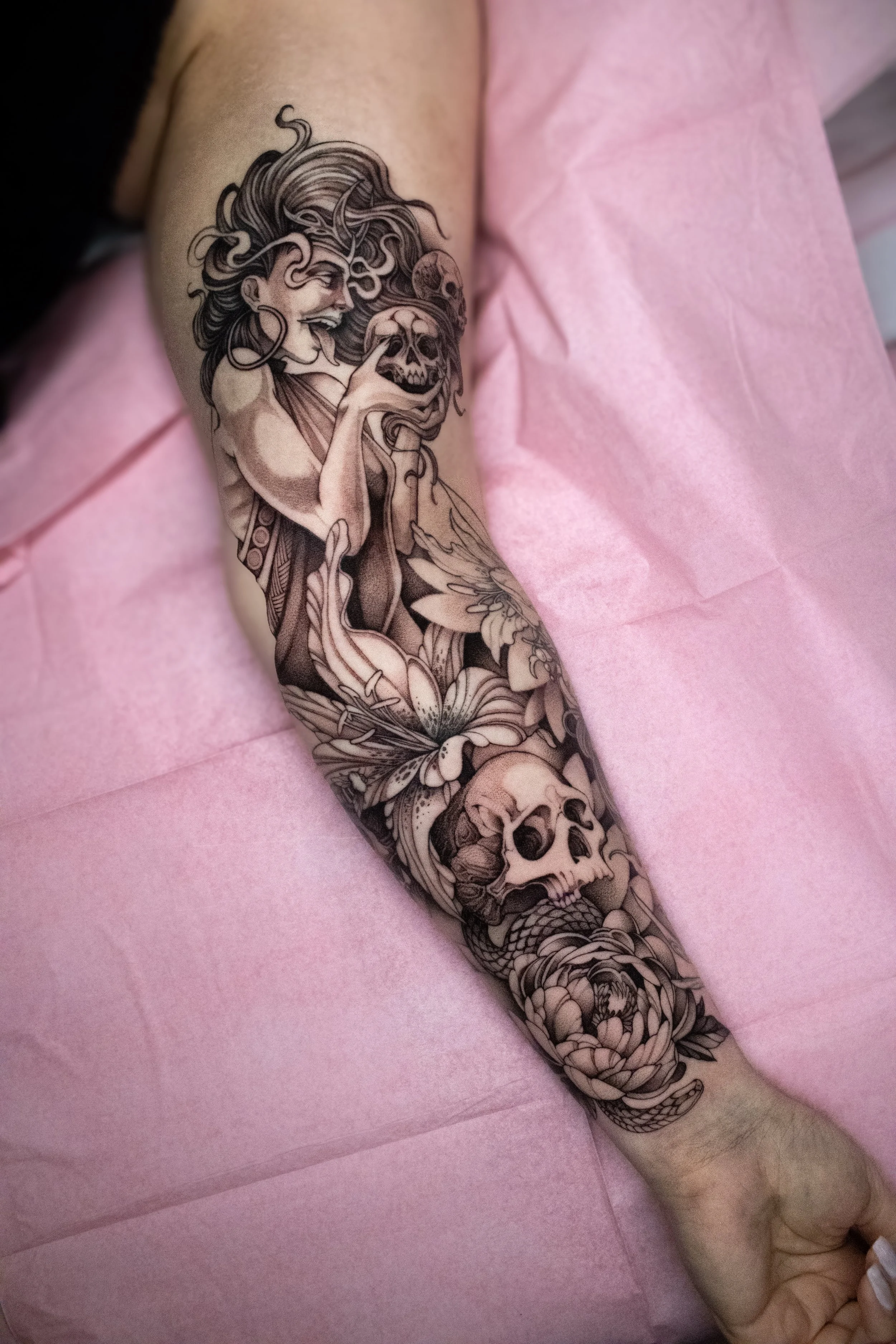 NEARLY EVERY PIECE I DO IS A CUSTOM DESIGN, CREATED FROM A CLIENT’S IDEAS AND INSPIRATION. EACH TATTOO IS CAREFULLY INKED IN A SAFE, STERILE ENVIRONMENT TO ENSURE LASTING BEAUTY AND SIGNIFICANCE. SOME ARE ARTWORKS I PERSONALLY LOVED THAT SOMEONE CHOSE TO PUT ON THEIR BODY, AND FOR THAT I AM FOREVER GRATEFUL.